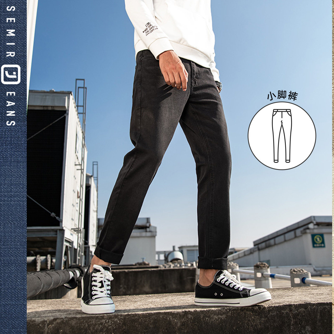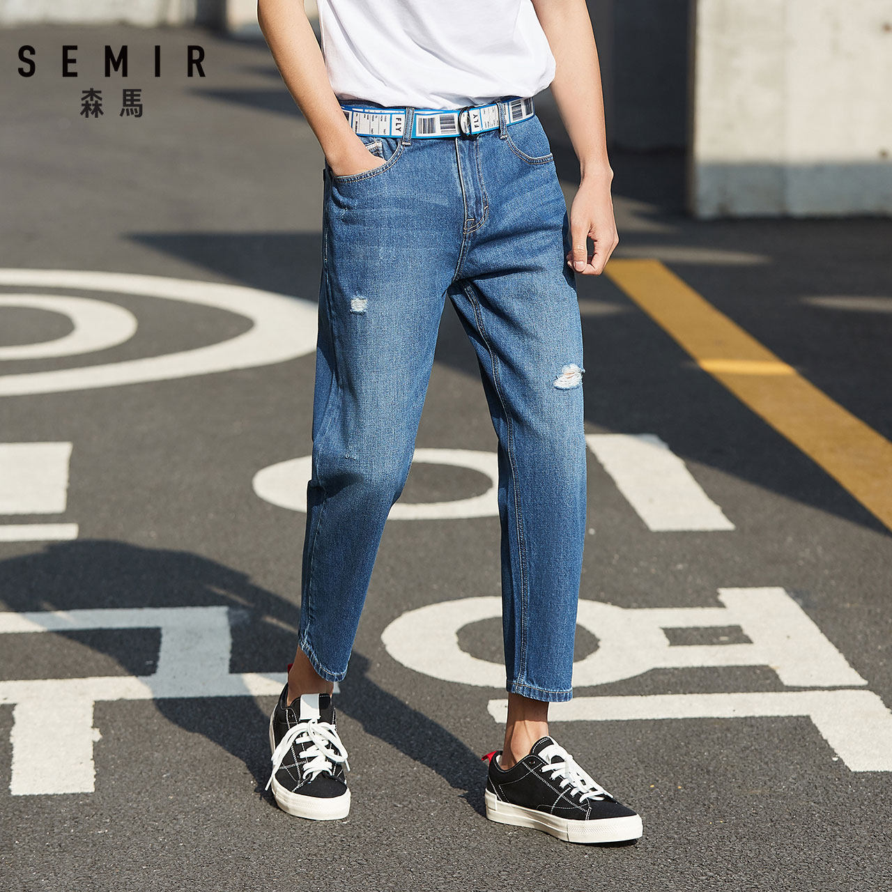 Semir Jeans Men Slim Feet Men Autumn New Denim Trousers Thin Boys Trend Ninth Points Demin Pants For Man Leather Bag