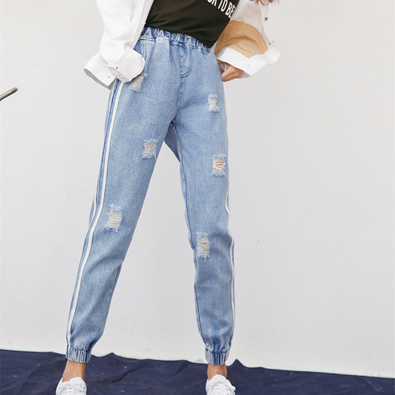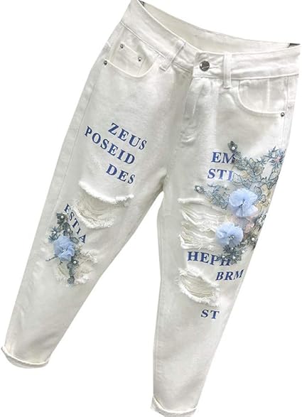Kbcjua Weisse Jeans Frauen Lose Plus Grosse Hosen Madchen Damen Sommer Herbst Loch Neun Minuten Jeans Hosen Hosen Amazon De Sport Freizeit