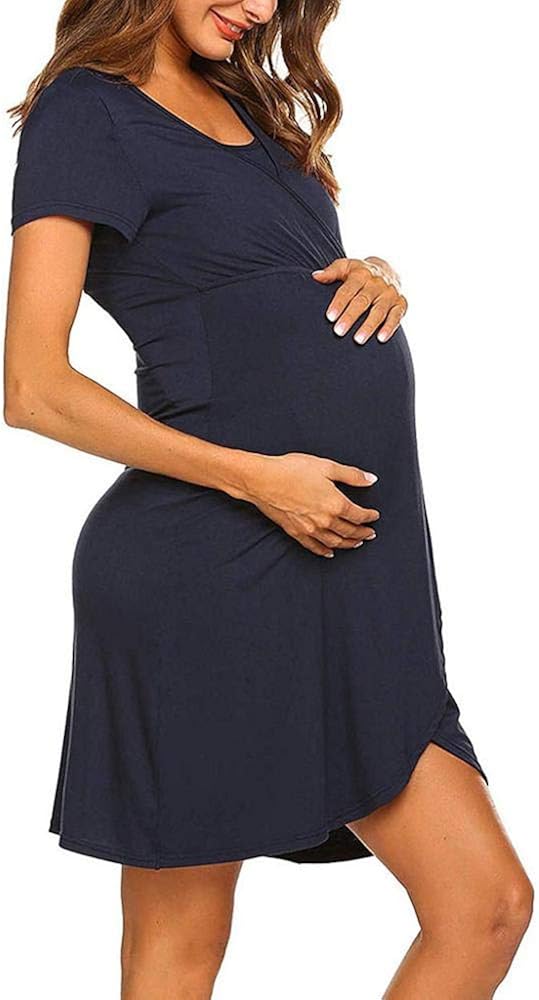 Damen Doublehero Damen Schwanger Lang Kleider Elegant Sommer Mode Kurzarm Sweatkleid Rundhals Einfarbig Freizeitkleid Partykleid Umstandskleidung Casual Pullover Schwangerschaft Pflege Kleid Schlafanzug Bekleidung Luxdental Si