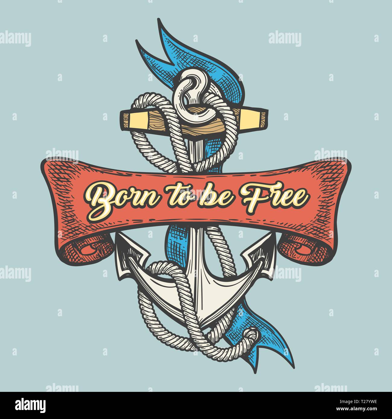 Anker Mit Bandern Und Formulierung Von Geburt An Frei In Tattoo Stil Gezeichnet Werden Vector Illustration Stock Vektorgrafik Alamy