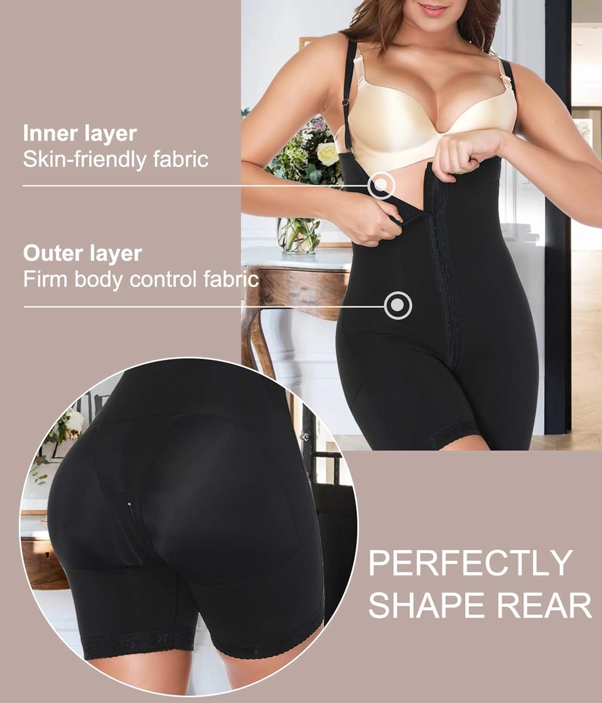 Shaperin Damen Shapewear Body Shaper Figurformender Mieder Bodys Taillenformer Bauch Weg Stark Formend Shaping Top Brustfrei Bodysuit Mit Haken Schwarz Beige Bekleidung Formende Bodys