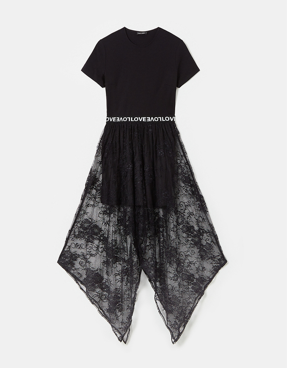 Elisa Cavaletti Schwarzes T Shirt Kleid Mit Spitze Elw2