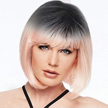 Yemocile Damen Kurze Locken Stilvoll Schick Glatt Kunstlich Haar Perucke Rosa Amazon De Beauty