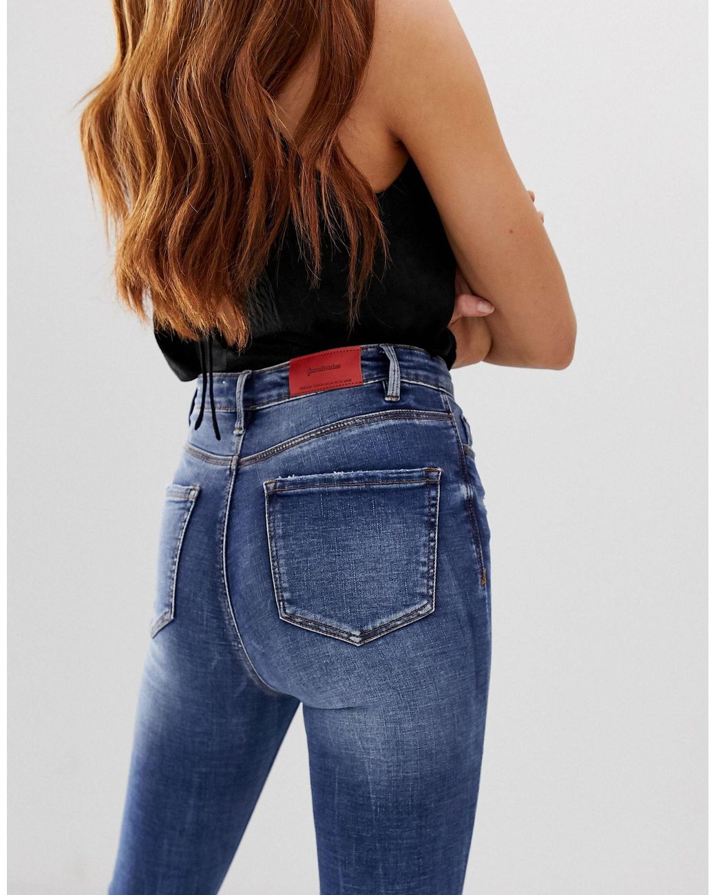 Bershka Denim Super High Waisted Skinny Jean In Blue Lyst