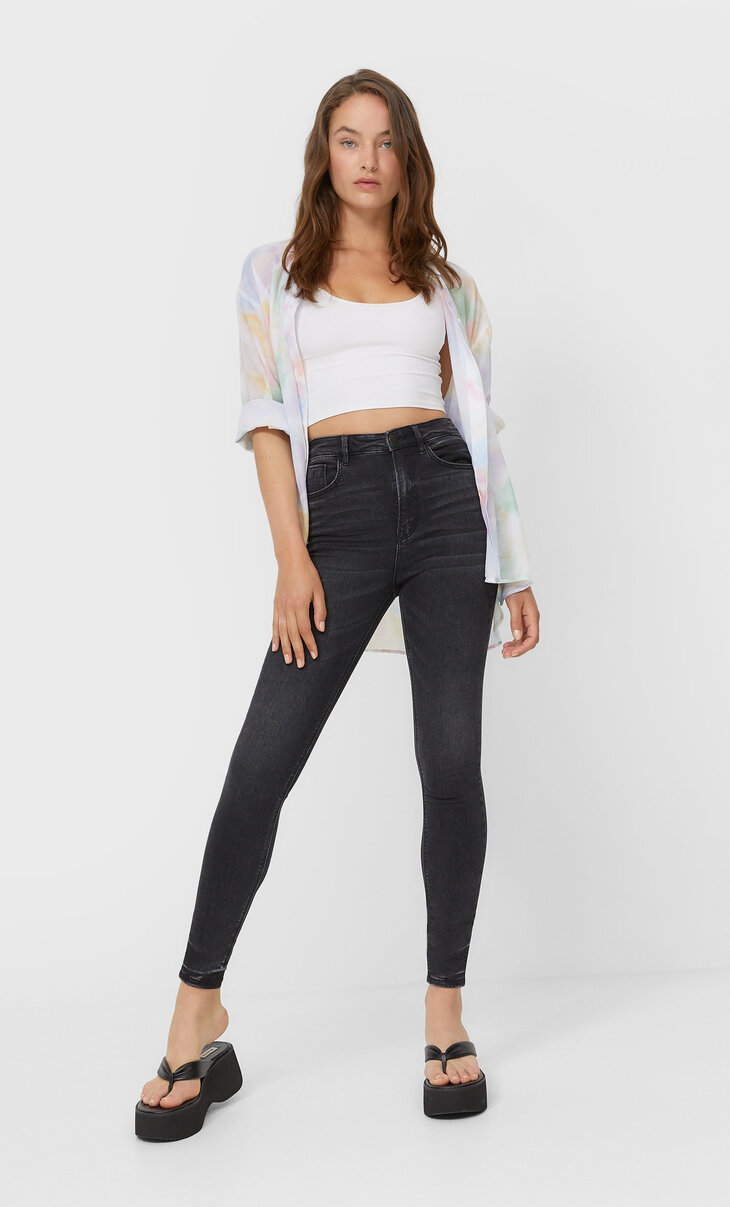 Super High Waist Skinny Jeans Woman Bershka