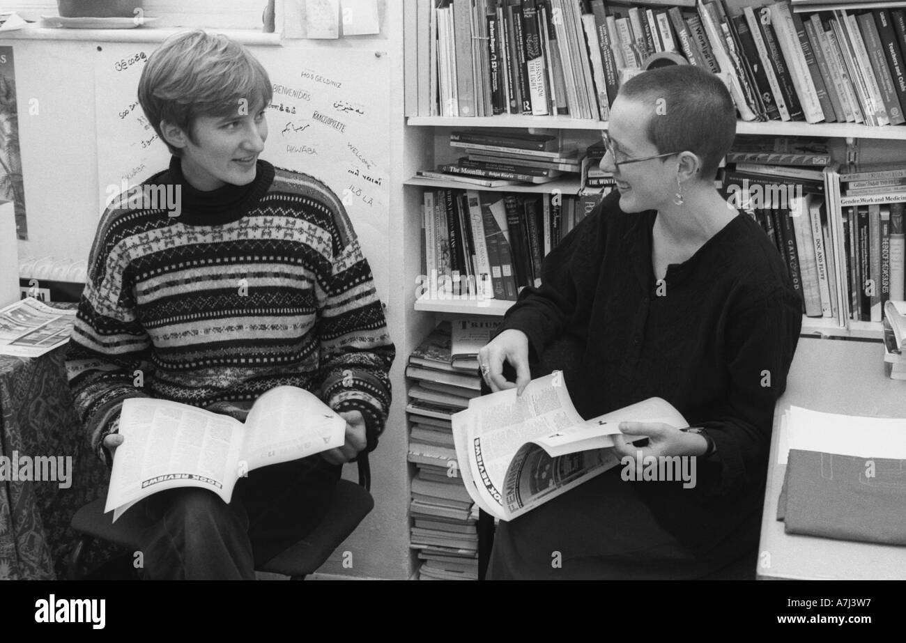 Zwei Junge Frauen Sprechen Und Lesen Zeitschriften In Den Frauen S Bibliothek In London Stockfotografie Alamy