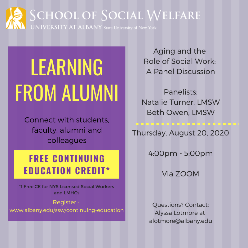 Ualbany Ssw After A Successful Learning From Alumni Workshop Today We Are Ready To Share Our August One Join Us For A Conversation About Aging The Role Of Social