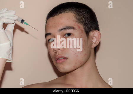Portrait Der Mann Druckte Pickel Auf Einem Dunklen Hintergrund Lizenzfreie Fotos Bilder Und Stock Fotografie Image