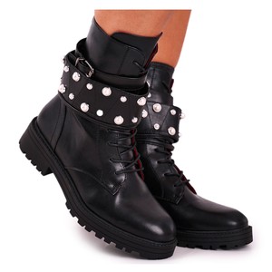Schwarze Leder Boots Mit Perlen