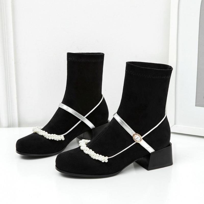 Grosshandel Neue Designer Schwarze Stiefel Mit Perlen High Chunky Heels Mode Heisser Herbst T Zeigen Frauen Booties Von Brand Fashion 87 87 Auf De Dhgate Com Dhgate