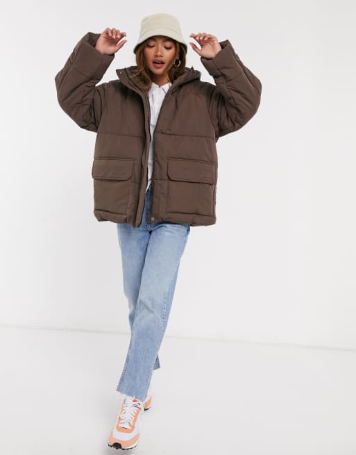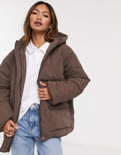 Asos Design Puffer Jacket In Brown Asos