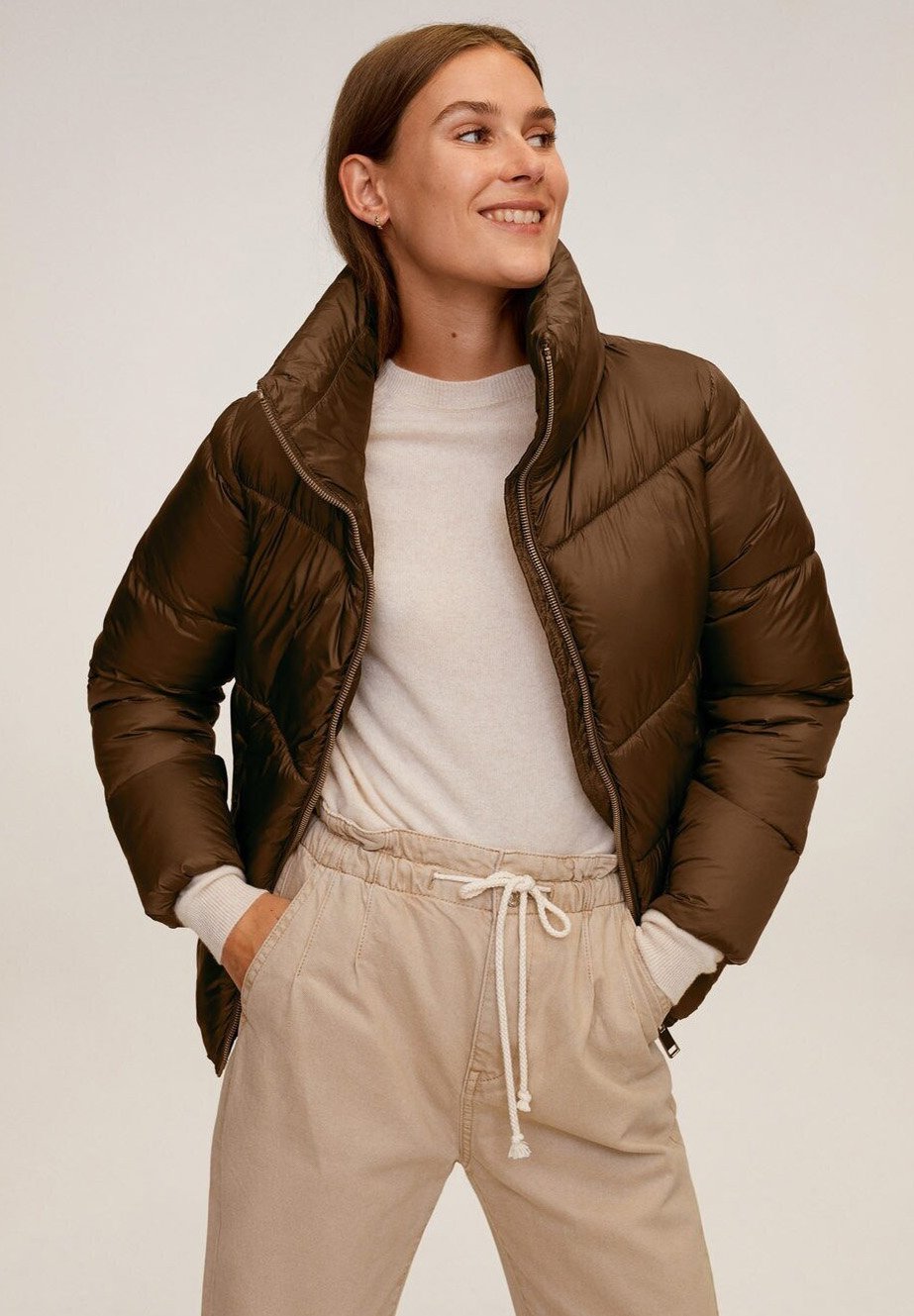 Metallic Puffer Jacket Brown Ladies H M Puffer Jackets Puffer Jacket Outfit Jackets