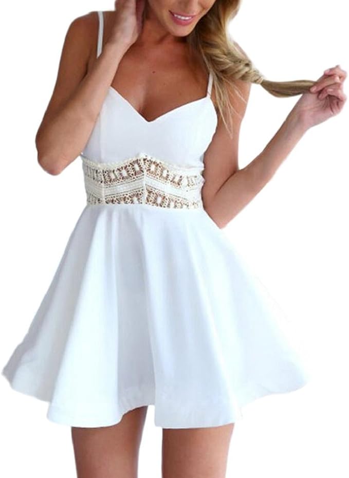 Doublehero Damen Sommer Armelloses V Ausschnitt Minikleid Spitze Hohle Kleid Strandkleid Weisses Spitzekleid Ruckenfrei Partykleid Beachwear L Weiss Amazon De Bekleidung