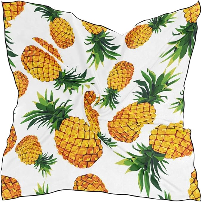 Buyxbn Damen Halstuch Halstuch Halstuch Halstuch Halstuch Weisse Ananas Hals Quadratisch Mode Damen Fur Haar Quadratische Kleine Halstuch 60x60cm Amazon De Bekleidung