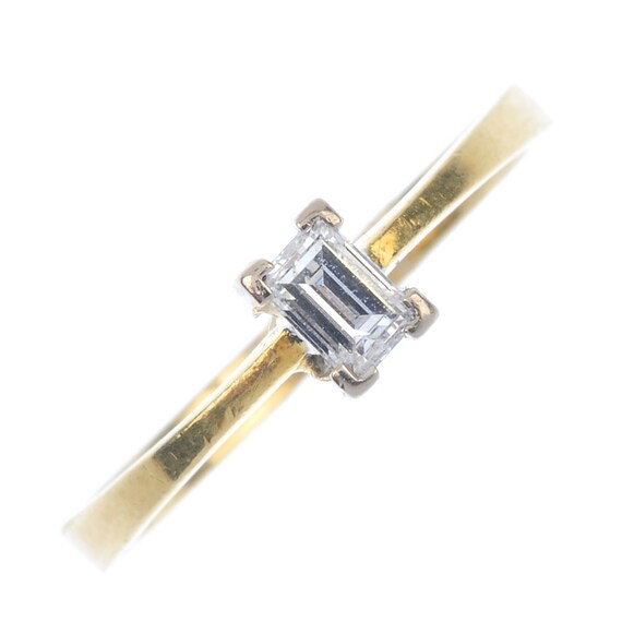 Jahrgang 18 Karat Gold Diamant Rechteckigen Single Stein Ring Etsy