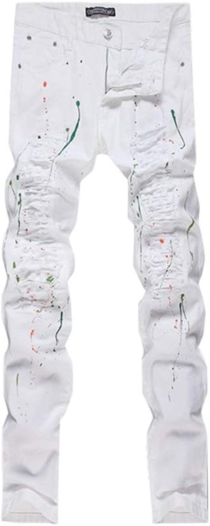 Jsydtx Manner Zerrissene Dunne Gerade Fit Biker Dunne Denim Jeans Weisse Jeans Hosen Amazon De Bekleidung