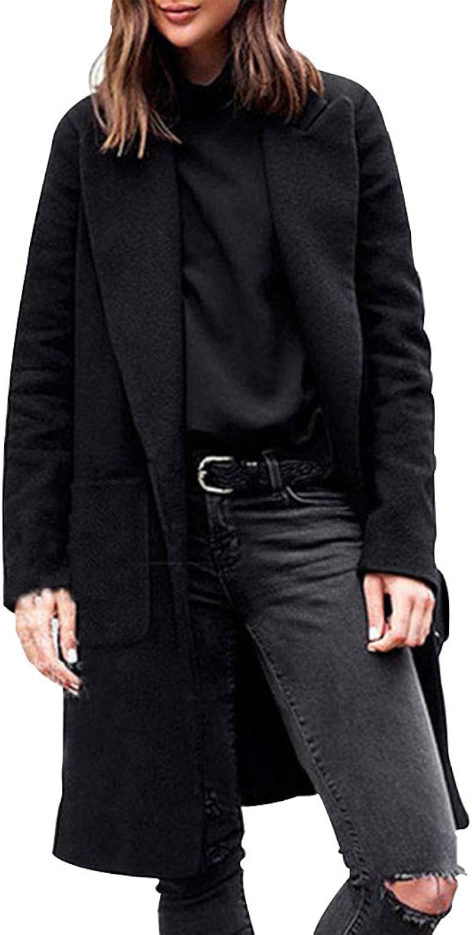 Kapian Damen Knielang Wintermantel Mantel Kunstliche Wollmantel Einfarbig Trenchcoat Langmantel Winter Frauen Wolle Elegante Langarm Arbeits Mode Jacke Offnen Vorne Parka Outwear Strickjacke Tops Streetwear Jacken