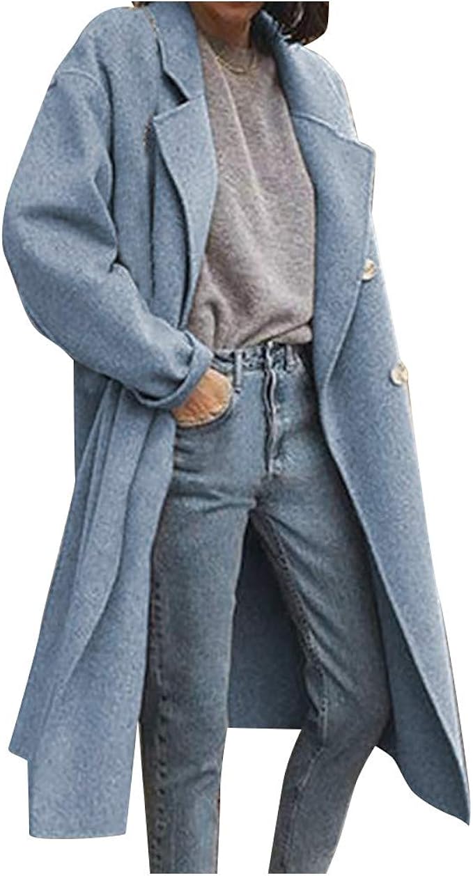 Damen Langer Trenchcoat Einfarbig Windjacke Langarm Beidseitig Zweireiher Wollmantel Trench Coat Outwear Mit Revers Amazon De Bekleidung