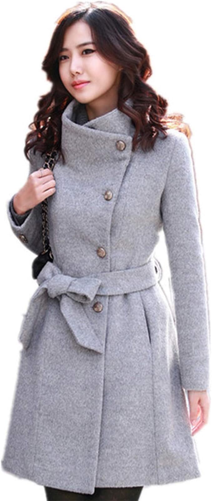 Tomasa Damen Winter Wollmantel Trenchcoat Mit Gurtel Beilaufiger Umlegekragen Langer Hulsen Wolljacke Wintermantel Damen Trenchcoat Wolljacke