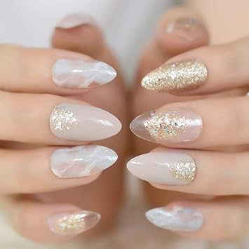 Qulin Kunstliche Nagel Spitz Stiletto Kunstnagel Marmor Wolke Klarer Schimmer Glitzer Zum Andrucken Fur Den Sommer Fur Den Alltag 24 Stuck Pro Set Amazon De Beauty