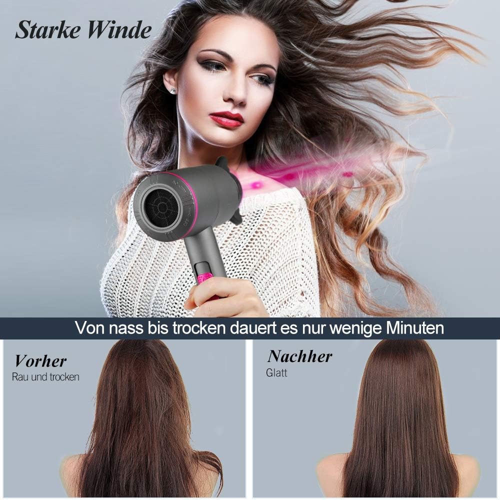 Innoo Tech Ionen Haartrockner Fohn 00w Ac Motor Fohn Professioneller Mit 3 Hitze Einstellungen Kaltlufttaste Mit 1 Diffusor 2 Konzentratoren Fur Viele Frisuren Amazon De Drogerie Korperpflege