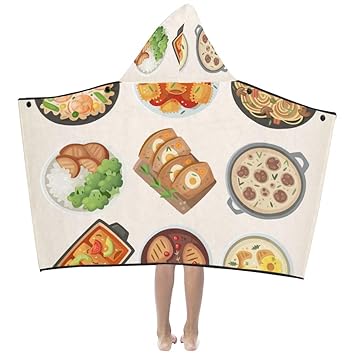 Leckeres Essen Abendessen Cartoon Weiche Warme Baumwolle Gemischt Kinder Verkleiden Sich Mit Kapuze Tragbare Decke Badetucher Werfen Wrap Fur Kleinkinder Kind Madchen Jungen Grosse Reise Picknick Amazon De Baby