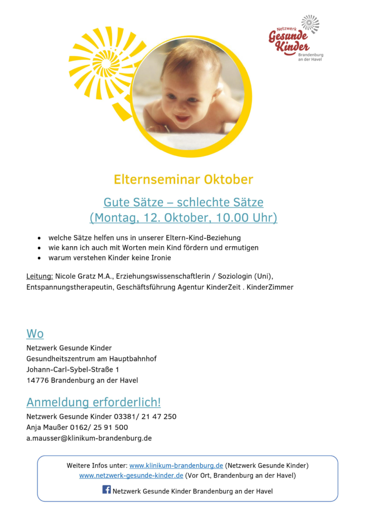 Elternseminar Im Oktober Netzwerk Gesunde Kinder