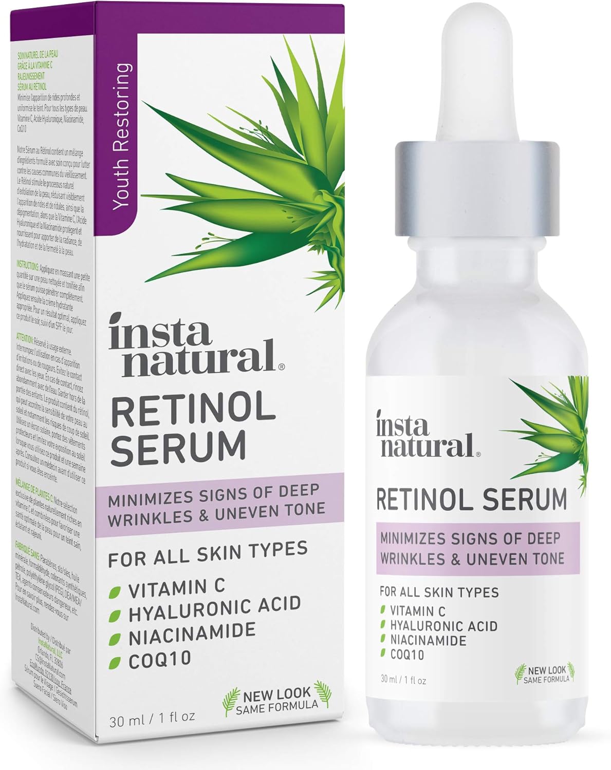 Instanatural Retinol Serum Anti Wrinkle Anti Aging Facial Serum Helps Reduce Appearance Of Puffiness Wrinkles Crows Feet Fine Lines With Vitamin C Hyaluronic Acid Instanatural