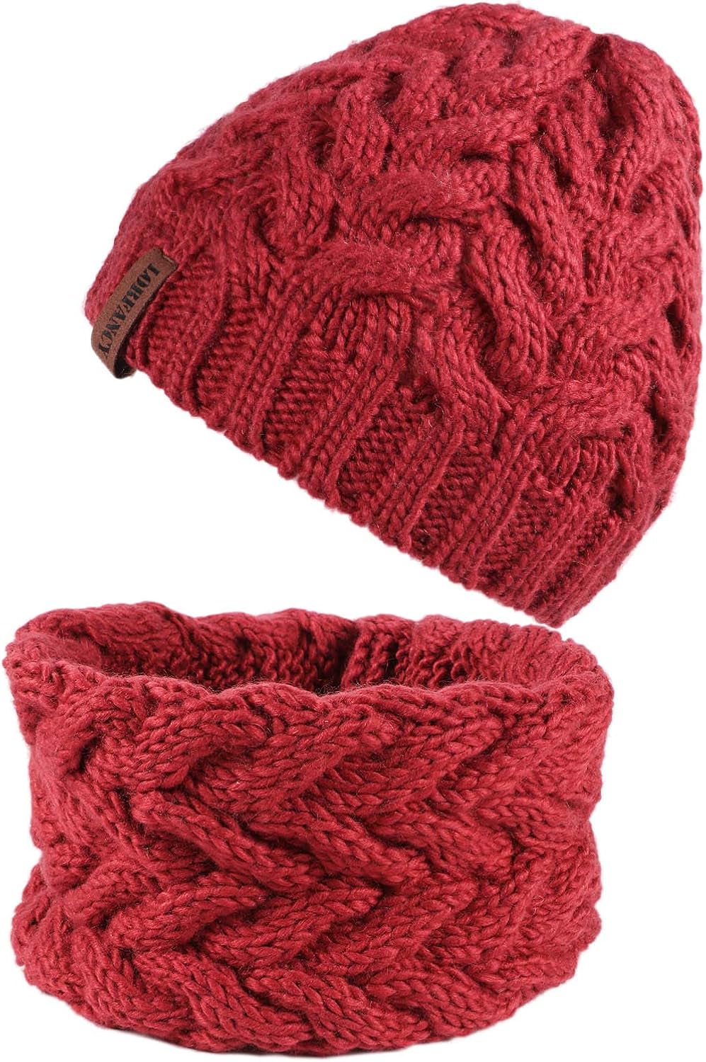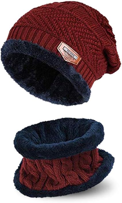 Ayamaya Wintermutze Und Schal Set Fur Herren Damen Strickmutze Warme Mutze Beanie Ski Hut Fleecefutter Rot Amazon De Sport Freizeit