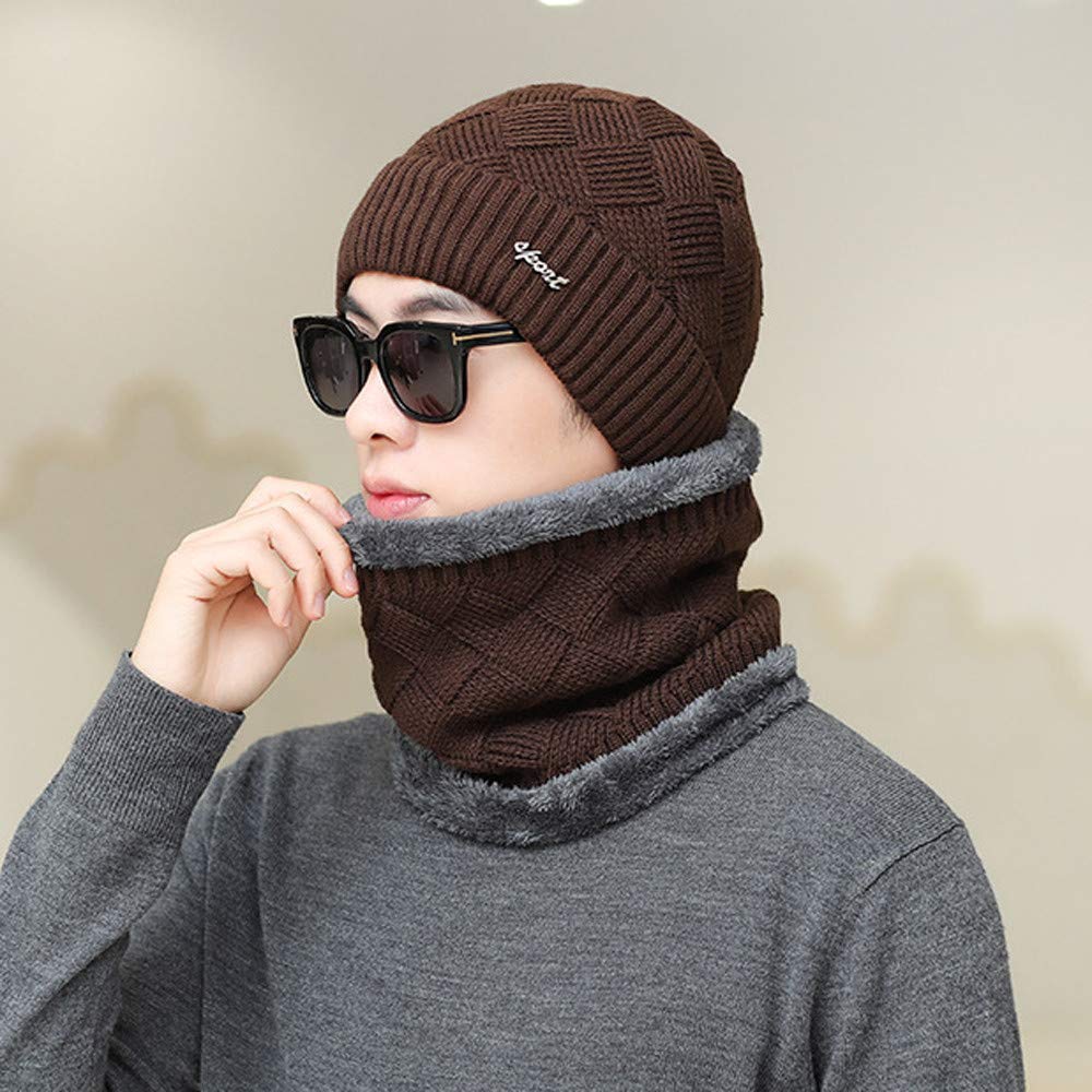 Beanie Strick Winter Mutze Herren Damen Warm Wintermutze Schwarz Grau Rot Marine Kaffee Plusch Warm Loop Schal Halten Set