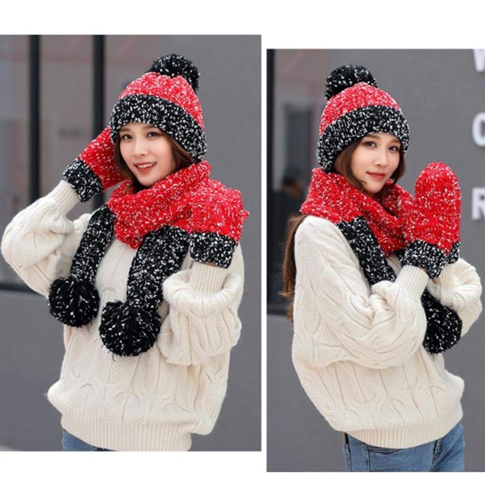 Rot Zkzkw Handschuhe Mutze Schal Set Damen Winter Dreiteilig Der Wilde Herbst Und Winter Plus Samt Suss Strick Set Accessoires Mutze Schal Handschuh Sets