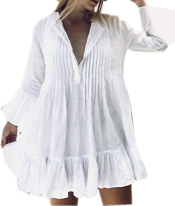 Ziyyoohy Casual Langarm Hemdkleid Shirt Kleid Minikleid Strandkleid Bikini Cover Up Weisses Hemd One Size 7003 Amazon De Bekleidung