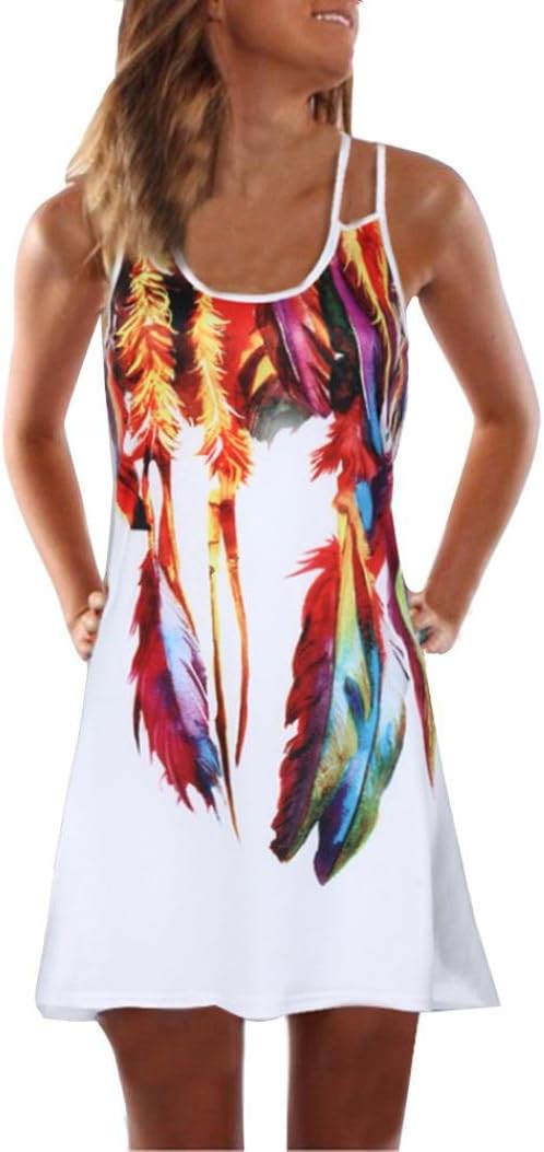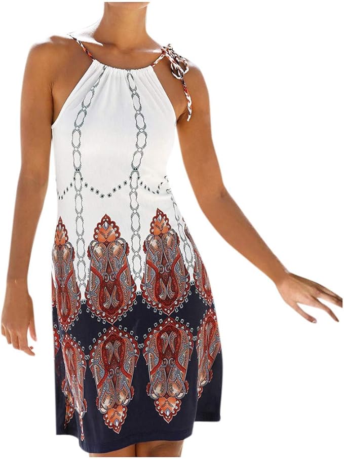 Damen Boho Aus Der Schulter Armelloses Elegant Sommerkleider Strandkleid Kurz Drucken O Ausschnitt A Line Minileider Schone Casual Partykleider Kurz Uribaky Amazon De Bekleidung