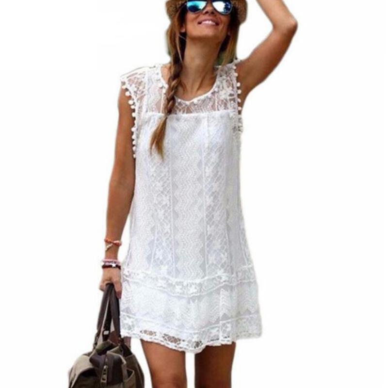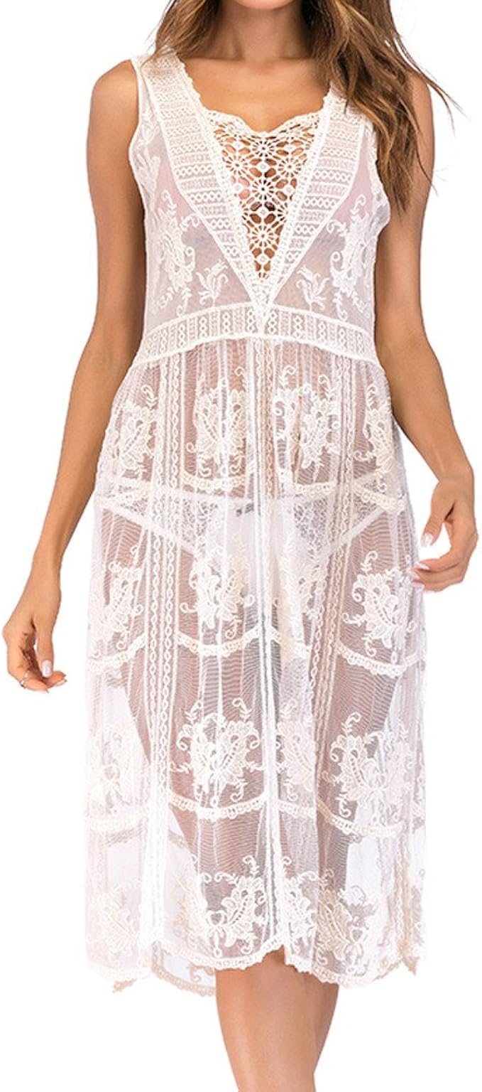 Goosuny Damen Sommerkleider Knielang Boho Spitzenkleid Kurz Weisses Sommerkleid Spitze Tunika Blumenkleid Armellos Strandkleid Transparent Bikini Badeanzug Cover Up Schone Beachwear Amazon De Bekleidung