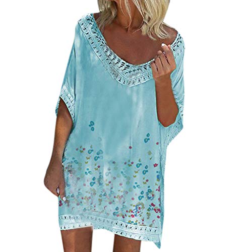 Riou Strandkleid Damen Sommer Grosse Grossen Kurz Bat Low Cut Boho