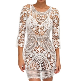 Ziyyoohy Elegant Crochet Stricken Bikini Cover Up Boho Strandponcho Strandkleid One Size Weiss Amazon De Bekleidung