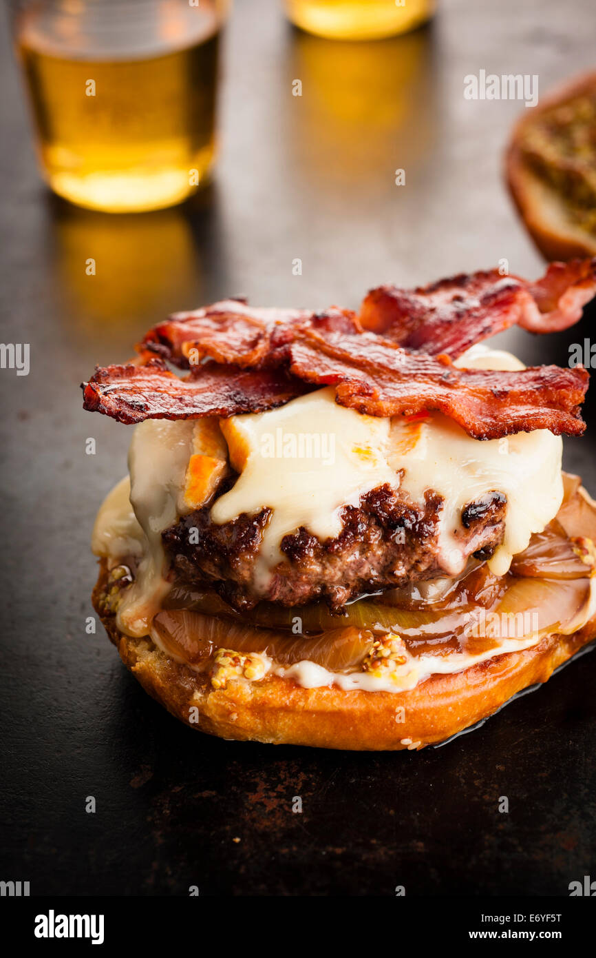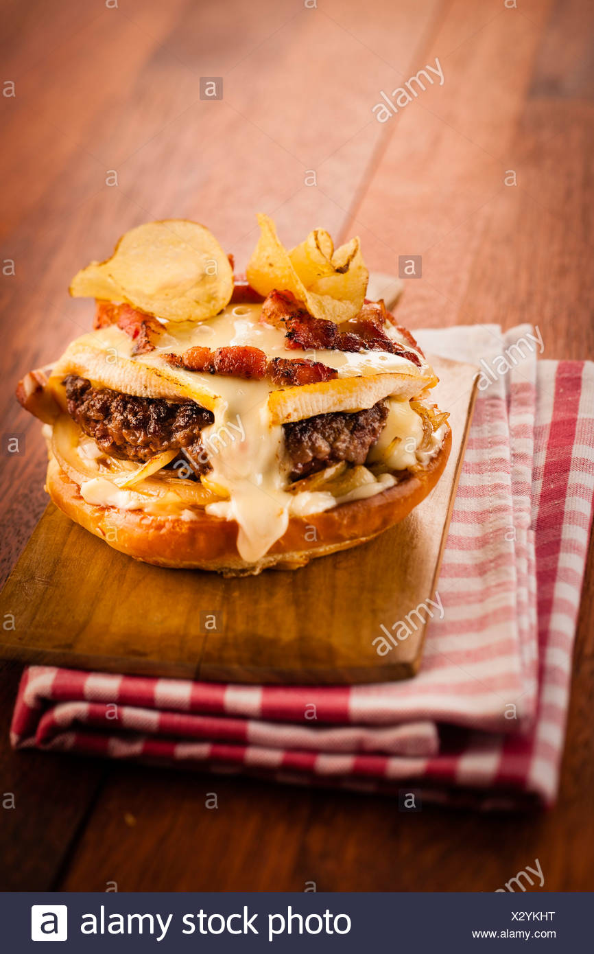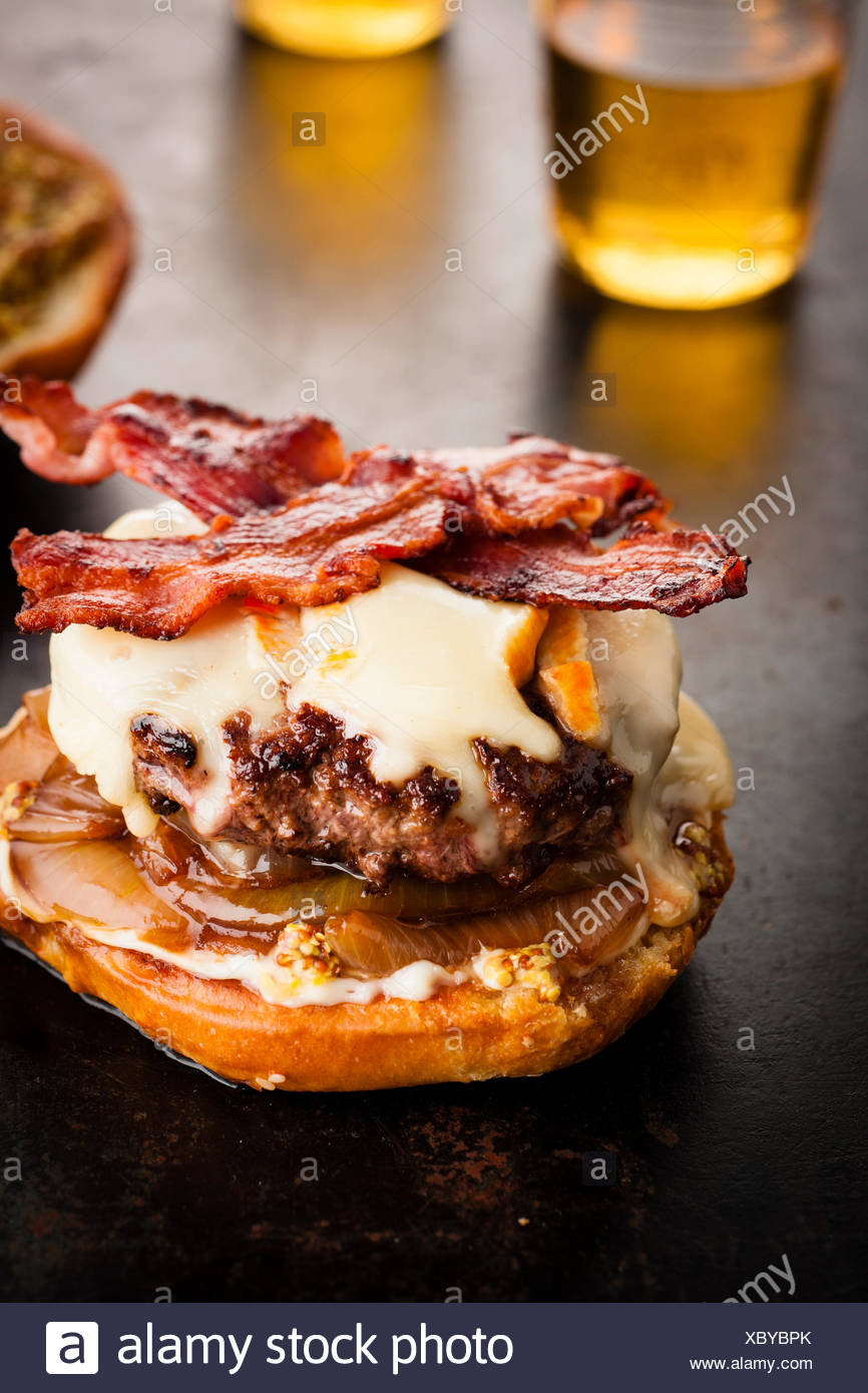 Hamburger With Raclette Cheese And Bacon Stock Photo Alamy