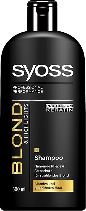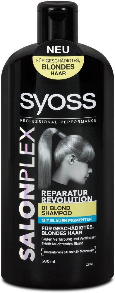 SYOSS Professional Performance Oleo Intense Permanent Oil Color Bright Red 592 This shade is suitable for dark blond to medium brown hair. SYOSS SALONPLEX SHAMPOO für GESCHÄDIGTES, BLONDES HAAR, 500 ml, 3,99 Euro (UVP) Gegen Verfärbung und Verblassen von blondem Haar Die professionelle SALONPLEX Technologie erneuert Millionen geschädigter Haarfaserbindungen bei jeder Anwendung SYOSS SALONPLEX SPÜLUNG für GESCHÄDIGTES, BLONDES HAAR, 500 ml, 3,99 Euro (UVP). Sulfate Free Blonde Shampoo with Iris Sulfate Free Blonde Shampoo with Iris Color protection plus illuminates, brightens blonde Premium quality shampoo for blonde colored hair Sulfate free, paraben free, no harsh salts, vegan formula.