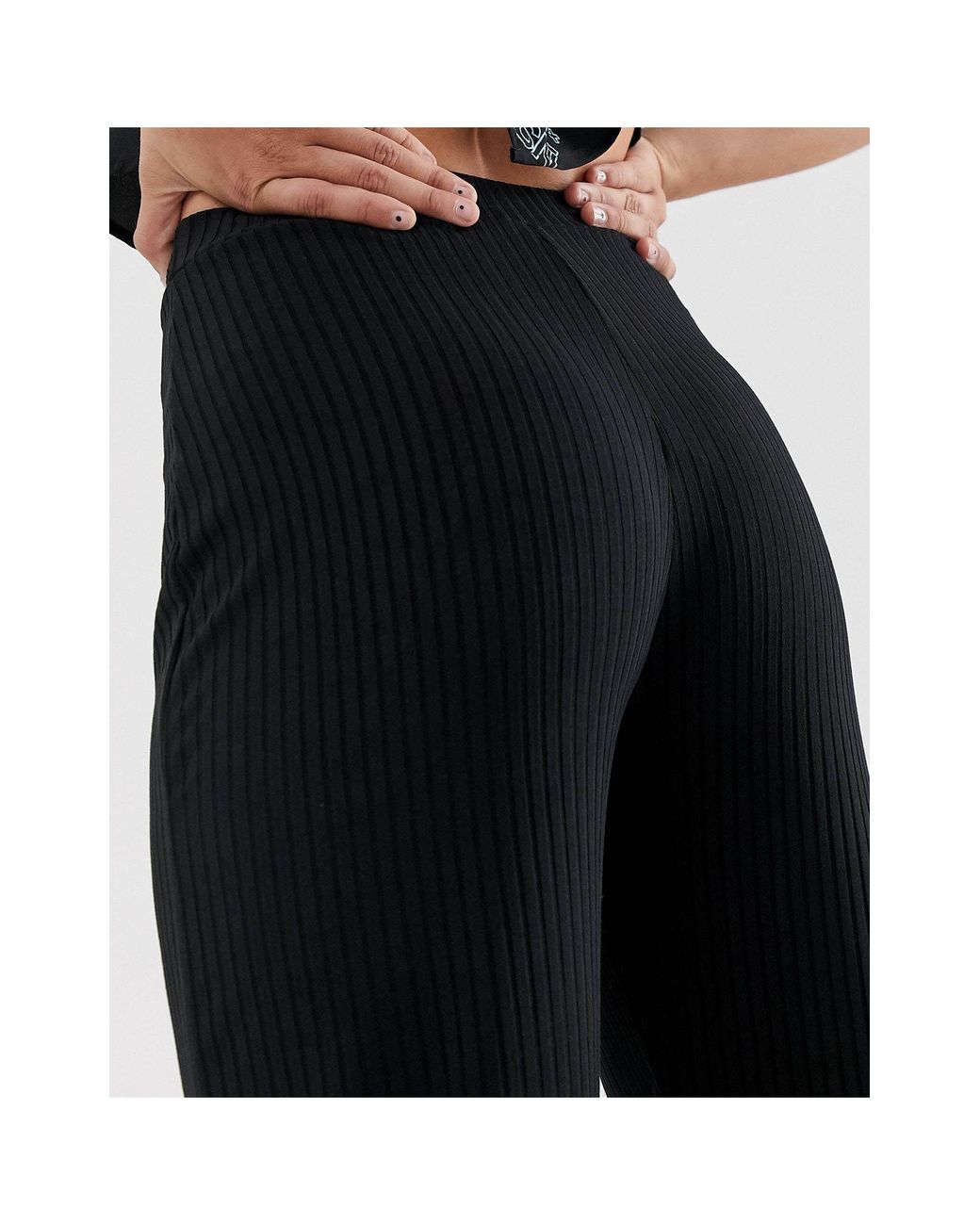 Bershka Ribbed Flare Pants In Black Asos