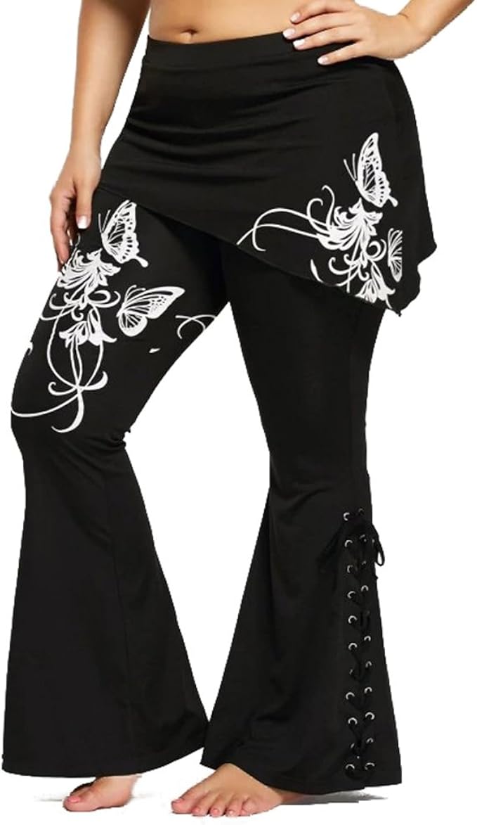 Kootk Damen Gothic Hose Schlaghose Lange Skinny Lace Up Mini Rock Schwarze Hosen Pants Chinos Hose Leggings Retro Hoch Taille Hose S Amazon De Bekleidung