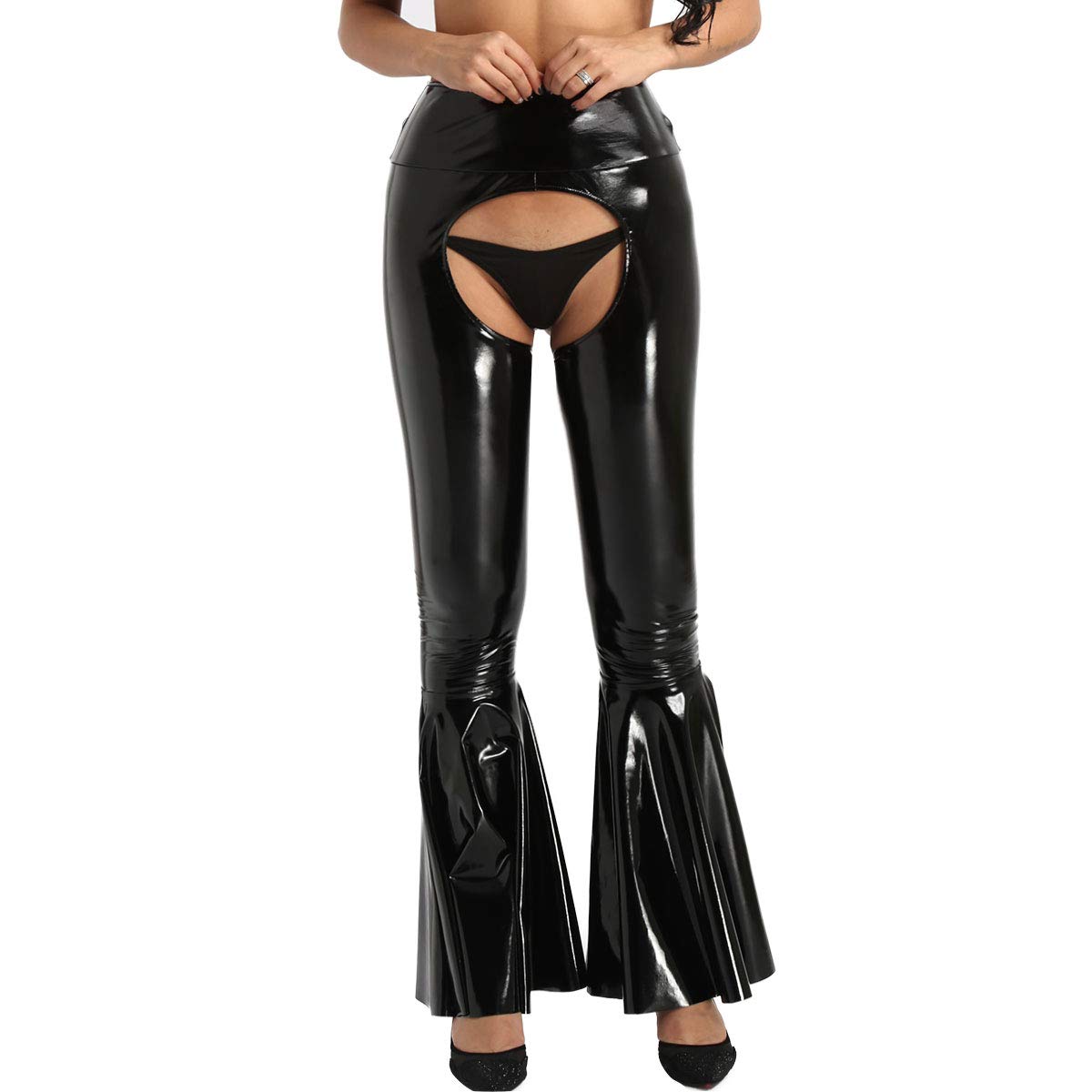 Damenmode Damen Glockenhose Schlaghose Metallic Wetlook Glanz Leggings Hose Party Clubwear Kleidung Accessoires Expertdigital Net