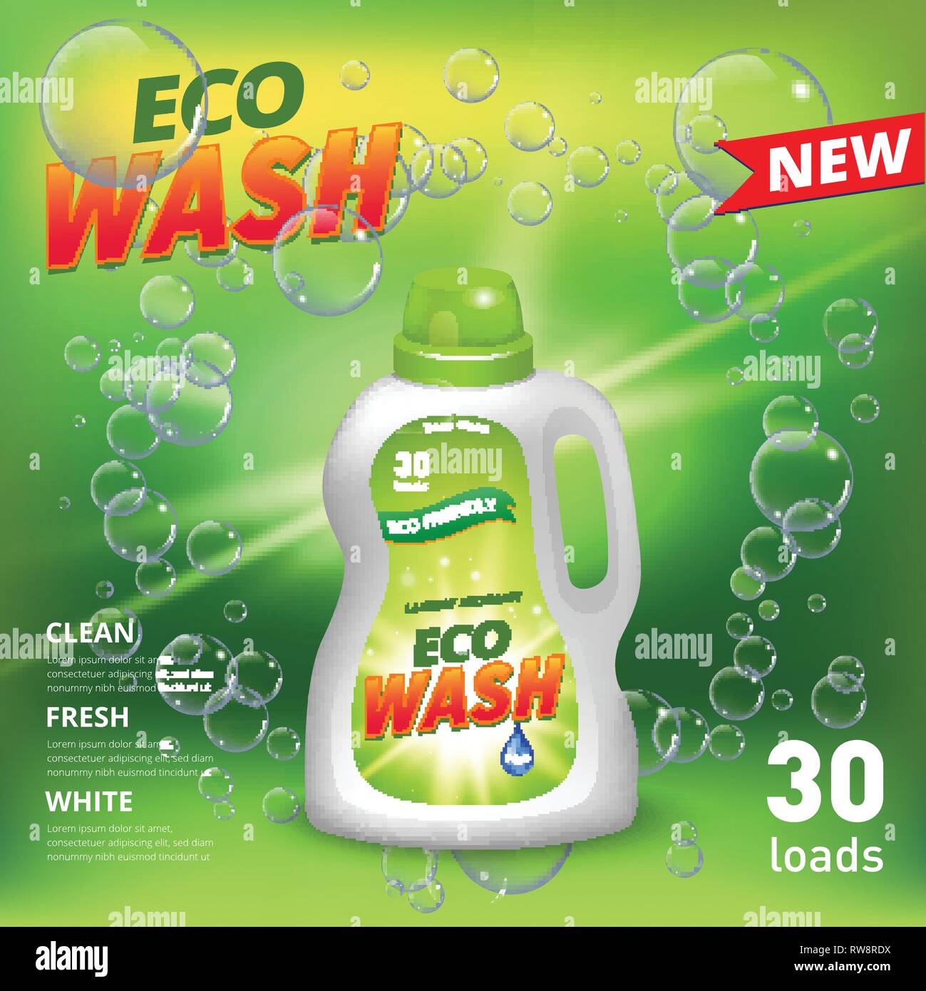 Waschmittel Des Anbieters Fleckenentferner Package Design Fur Werbung Mit Seifenblasen Waschmittel Banner Auf Grunem Hintergrund Stock Vektorgrafik Alamy