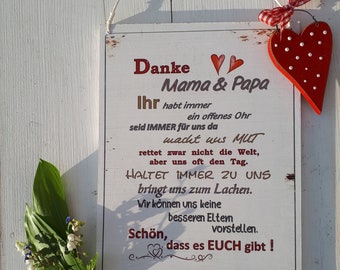 Danksagung Mama Und Papa Bild Optional Mit Holz Rahmen Und Namen Personalisiert Geschenk Geschenkidee Muttertag Vatertag Mama Papa Amazon De Handmade