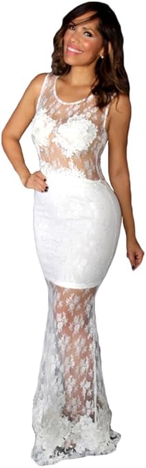 Neue Weiss Transparent Spitze Langes Abendkleid Ball Cocktail Kleid Party Kleid Tragen Gewand Grosse Uk 8 10 Amazon De Sport Freizeit
