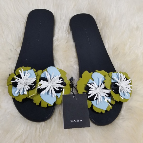 Zara Two Toned Floral Slides Size 39 40 Damen Sandalen