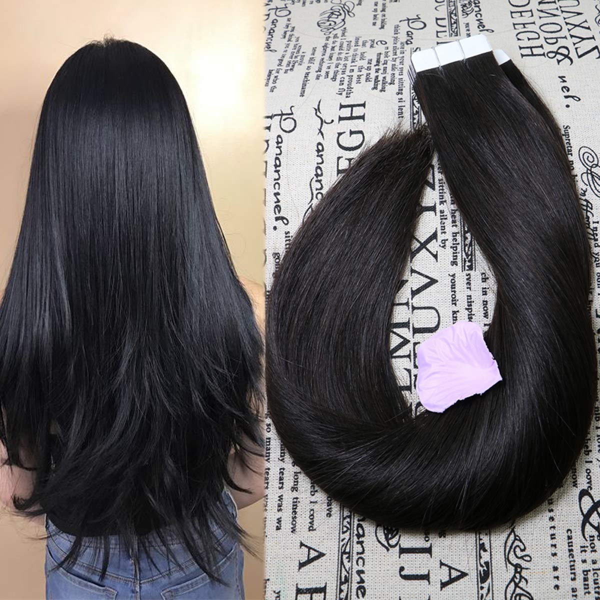 Amazon Com Tape In Human Hair Extensions Natural Black Soft Straight Full Head Remy Hair Extensions 50grams pcs Seamless Skin Weft Tape In Extensions 1b Beauty