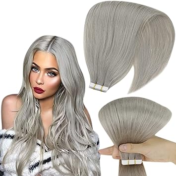 Amazon Com Hetto Colored Tape In Human Hair Extensions Real Hair Tape Extensions 14 Inches Silver Hair Extensions Tape In Remy Hair g Beauty