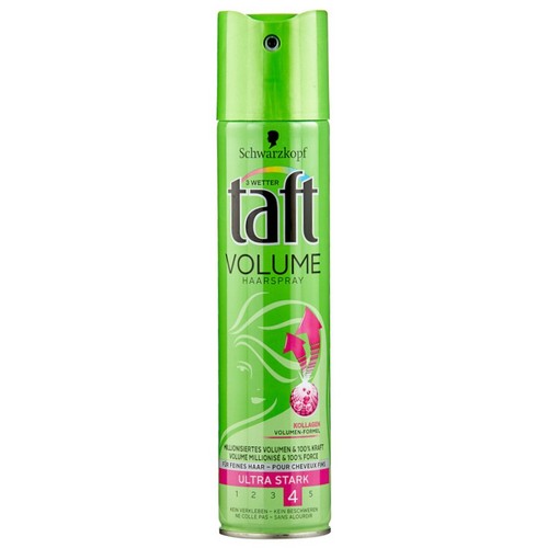 Buy Schwarzkopf Taft Keratin Hair Spray Ultra Strong 4 (250 ml) online at purpllecom Flat 10% OFF* on your First App order!. Taft Volume pentru păr Ultra Strong 4 ( Hair Spray) 250 ml Ultra Strong 4 Hair Loss vă va asigura că coafura este aerisită și plină de viață Acesta vă va oferi până la 3 zile de fixare fără păr lipit și fără reziduuri În plus, nu îngreunează părul, ajută la protejarea acestuia de uscare, umiditate, vânt, radiații UV. Schwarzkopf Taft Double Volume Hair Spray is a volumizing hair spray which claims to give that push up effect onto the collagen This falls under number 4 in the order of products to be used to style the hair.