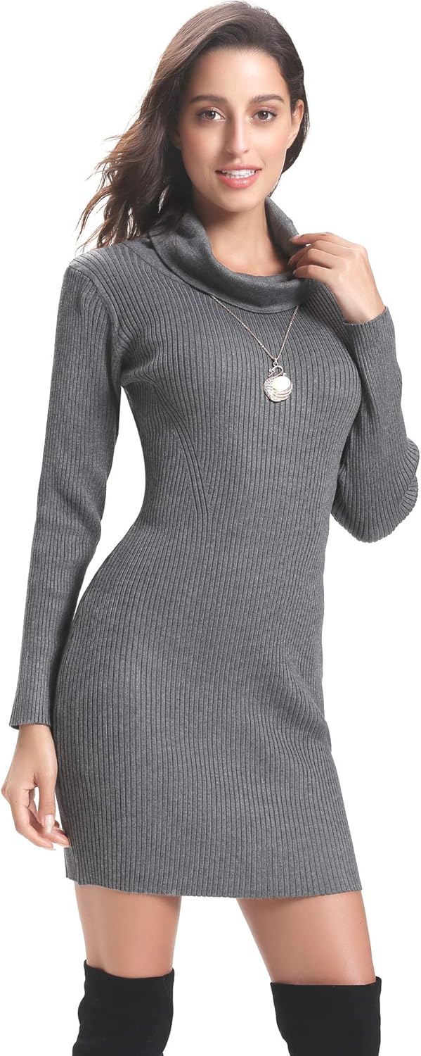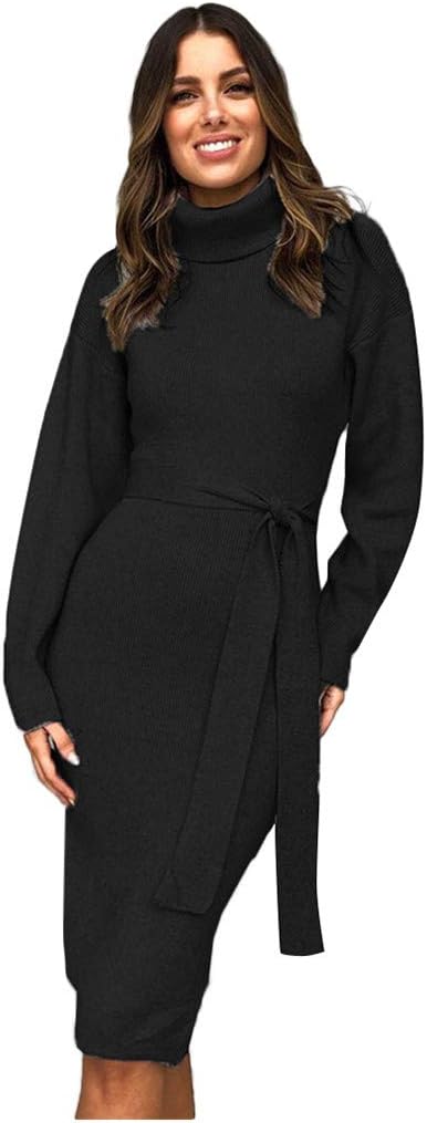 Damen Abollria Damen Strickkleid Rollkragen Langarm Stretch Pullikleid Lang Strickpullover Elegant Minikleid Fur Winter Bekleidung Luxdental Si