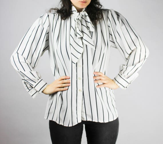 Vintage Weisse Bluse Schwarze Streifen Gestreiftes Shirt Mit Etsy